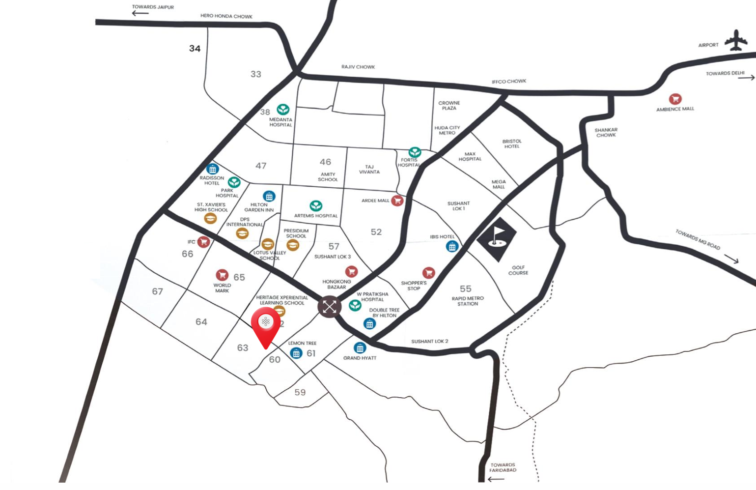 The project benefits from multiple access points via 60m and 24m wide sector roads, ensuring smooth entry and exit at all times. The thriving neighborhood is dotted with top educational institutions like St. Xavier’s High School, Lotus Valley School, DPS International, and Presidium School — making it ideal for families.