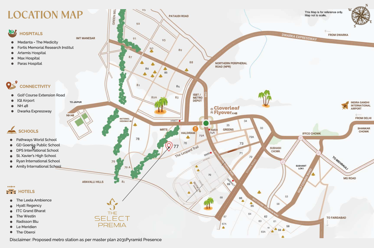 Situated in the heart of Gurgaon, Sector 77, the project enjoys seamless connectivity to all major parts of the city and beyond. Residents can reach IGI Airport within 30 minutes, Cyber City within 20 minutes, and Rajiv Chowk in just a short drive. The proposed metro connectivity further enhances accessibility, making daily travel smooth and hassle-free. Additionally, reputed schools, specialty hospitals, and shopping centers are located within 5 minutes, ensuring that everything you need is just around the corner.