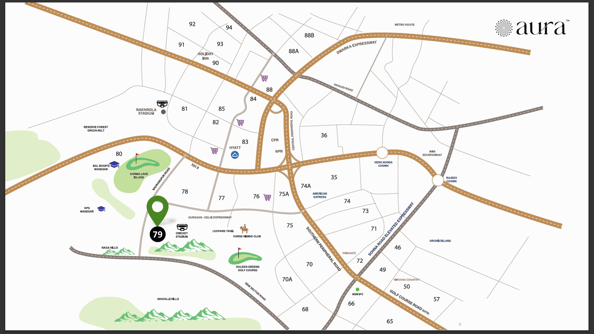 Located in Naurangpur, Southern Gurugram, this development enjoys a strategic position within the NCR’s most promising growth corridor. Sector 79B is rapidly emerging as a sought-after residential hub, surrounded by established developments like Bestech Altura, M3M Antalya Hills, Signature Global 79B, and Mapsko Mount Ville.