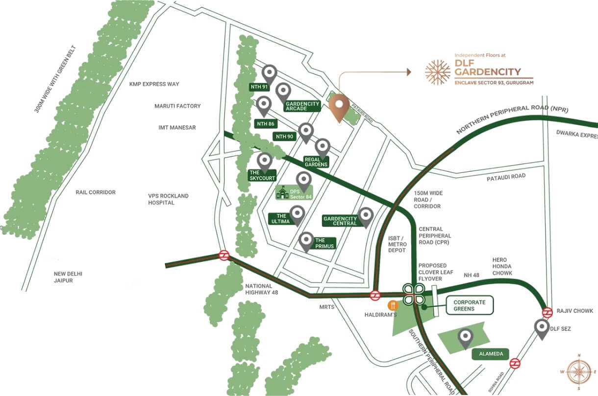 Welcome to DLF Garden City Enclave, a thoughtfully planned residential community of premium independent floors by DLF Limited, located in the rapidly developing heart of New Gurugram – Sector 93. Spread across 26.9 acres of lush green land, this low-density development offers an ideal blend of modern luxury, urban convenience, and serene living.