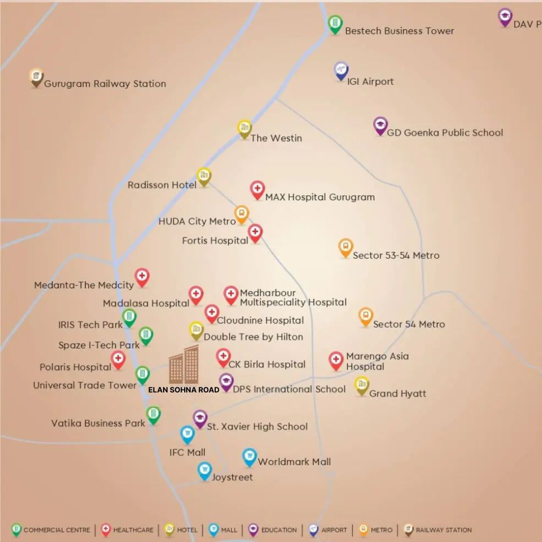 Situated in the highly desirable Sector 49, Sohna Road, this upcoming project enjoys exceptional connectivity and proximity to Gurgaon's key commercial, educational, and healthcare destinations: