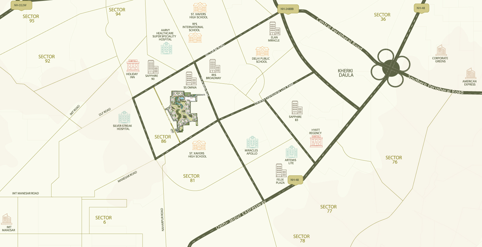 Emaar Serenity Hills enjoys a truly rare advantage—being deeply peaceful yet perfectly connected. Located on the wide 75-metre road in Sector 86, the community is minutes away from Gurugram’s key business districts, educational institutions, and healthcare hubs.