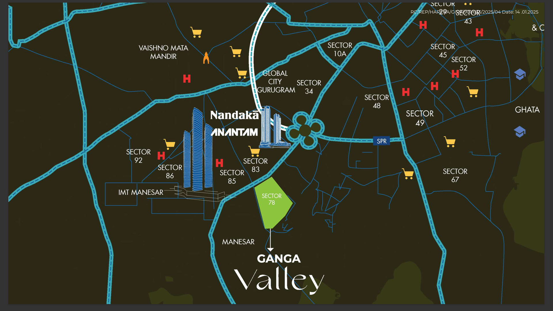 Strategically positioned on the growth-rich corridor of SPR Road in Sector 78, Ganga Valley Floors provides seamless access to major highways, employment hubs, schools, and more: