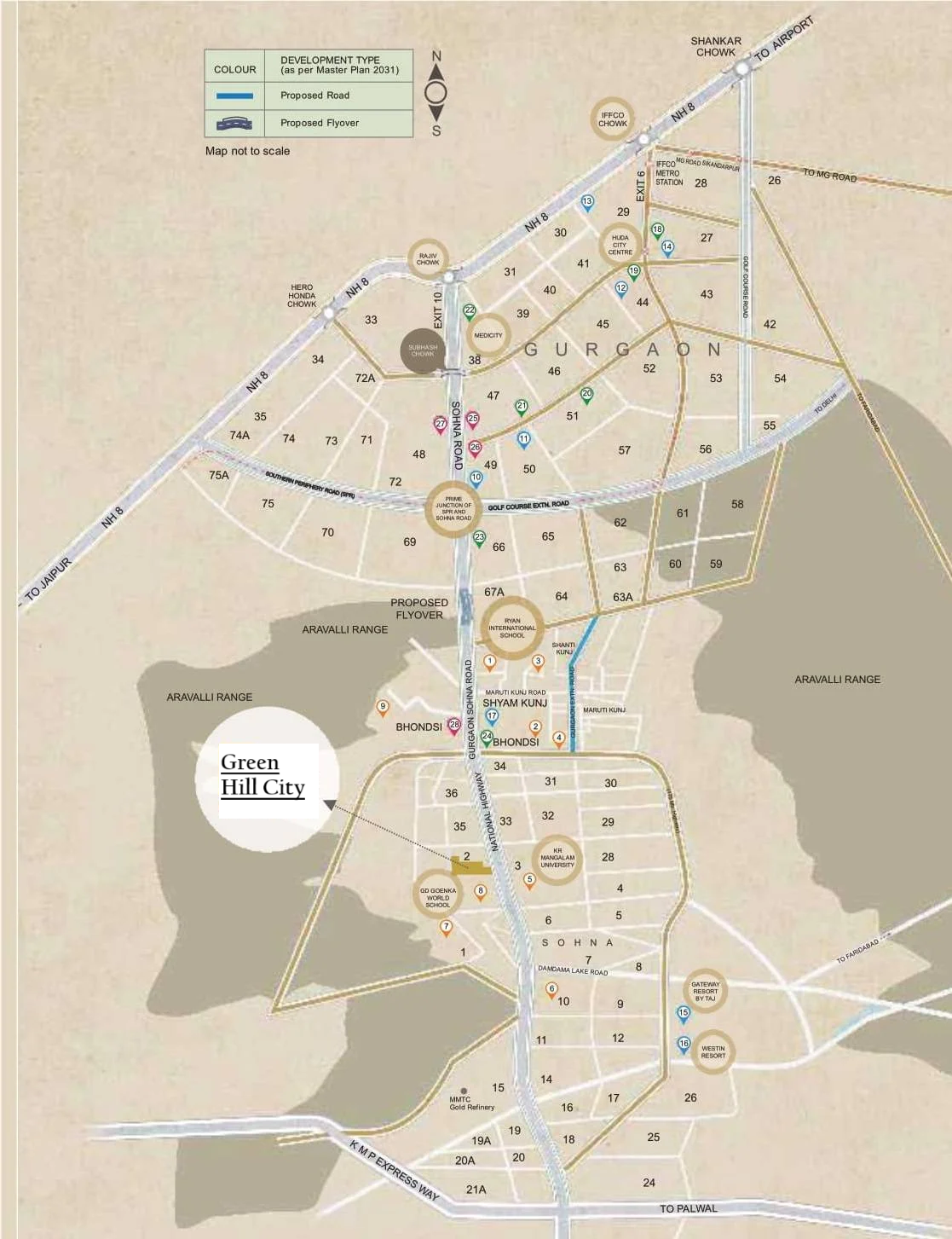 GREEN HILL CITY enjoys strategic proximity to major roads, economic hubs, and infrastructure corridors that are transforming South of Gurgaon into the next real estate and investment hotspot.