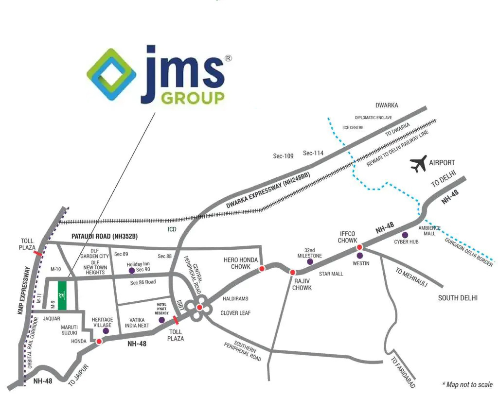 Situated in Sector M9, a fast-growing locale on Manesar’s map, the project benefits from cosmopolitan connectivity and developing infrastructure. With NH‑48, Dwarka Expressway, KMP Corridor, and a future metro station nearby, commuting is simplified: