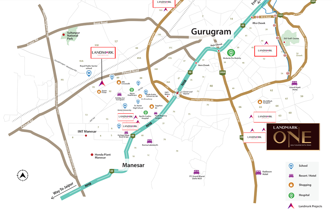 Landmark One enjoys a prime position on Golf Course Extension Road, which has evolved into a major commercial and corporate hub in Gurgaon.